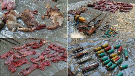 از این شکارچیان، لاشه ۲۳ سرخرگوش، دو قبضه اسلحه شکاری، ۲۰ عدد فشنگ، ۴ عدد نور افکن و ۶ عدد چاقو کشف شد