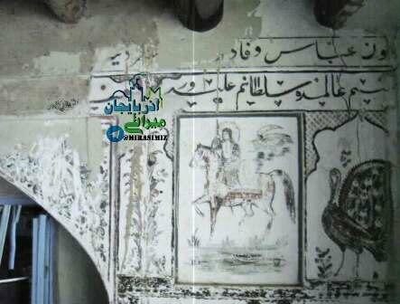 کتیبه ای به زبان تورکی بر روی دیوار پرنقش و نگار مسجد میرپنج خامنه با بیش از ۱۵۰ سال قدمت.