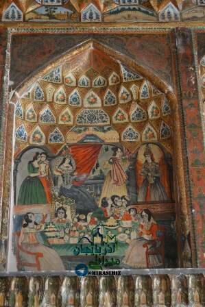 تاریخچه این بنا به اوایل دوران قاجار برمی گردد که دو حیاط بیرونی و اندرونی و دو بلوک خانه دارد که هر دو رو به قبله می باشد. نمای ساختمان بیرونی جلوه گاه هنر اصیل آذربایجانی و دارای نقاشی های بسیار زیبا و اصیل است که الهام گرفته از موضوعات اساطیری قدیم از جمله داستان یوسف و زلیخا از قرآن مجید و دیگر تواریخ و داستان هاست و سقفی سراپا نمونه قدرتمند و شگفت انگیزی از مینیاتور آذربایجان است.