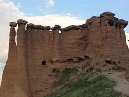 شکل دودکش، در واقع نوعی سنگ قارچیشکل است که بر اثر فرسایش پدید آمده و به منارهای بلند و نازک میماند که سنگ دیگری روی آن قرار گرفتهاست و در اصطلاح زمینشناسی «دودكش پرى» (هوودوو) نامیده میشود. سازندگان قلعه با در نظر داشتن طرح اولیه، اقدام به کندن کوه و تخلیه خاکها و سنگها کردهاند و اتاقها را به وجود آوردند و به هر تعدادی که به اتاقهای آن اضافه شده راههای ارتباطی آنها به مجموعه نیز به صورت دالانهایی افزوده شدهاست.فضای کلی قلعه به سه دسته شامل اتاقها، دالانها و راهپلهها تقسیم میگردیدهاست که گاه دارای سقفی تیزهدار و دارای محلهایی به شکل مثلث یا مدور روی دیوارها برای قرار گرفتن پیهسوز بودهاست.