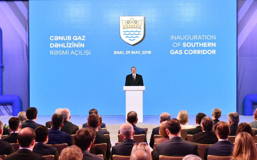آذربایجان رسپوبلیکاسینین پرزیدنتی ایلهام علیئو مایین ۲۹-دا سنگچال ترمینالیندا جنوب گاز دهلیزینین رسمی آچیلیش مراسیمینده ایشتیراک ائدیب.