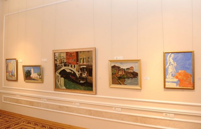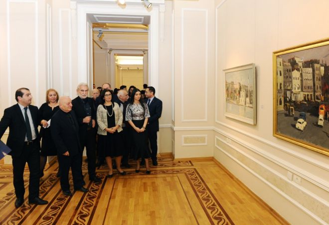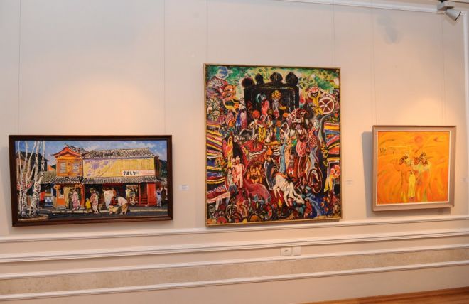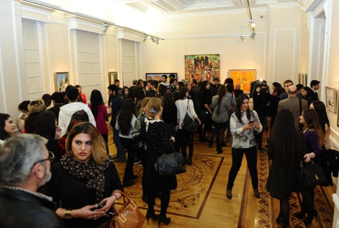 سرگیده خالق رسساملاری میکائیل عبداللایئو, توغرول نریمان بی اُو, طاهیر صالاح اُو, سالام سالام زاده, کاظیم کاظیم زاده, مارال رحمان زاده, گوللو موصطفایئوا, کامیل خانلار اُو, بؤیوک آغا میرزا زاده, نادیر عبدالرحمان اُو, ائلبای ریضاقولی یئو, جاهانگیر روستمم اُو, نادیر قاسیم اُو, سَحلاب مَمّد اُو, عاریف حسین اُو, همچینین اَمکدار اینجه صنعت خادیملری لطیف فیض اله یئو, وَجیهه صمد اُوا, نجف قولو ایسماعیل اُو, حافیظ ممّد اُو, توغرول صادیق زاده و عبدالخالیق طرفیندن اؤتن عصرین 80-50جی ایللرینده یارادیلمیش, خالقلارین دوستلوغو طَرَننوم ائدن, اؤزونده مولتیکولتورال و تولئرانت دَیَرلری ائحتیوا ائدن رنگکارلیق و گرافیکا اثرلری نوماییش اولونور.