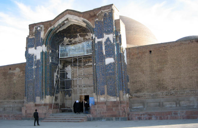 جهان شاه دؤورونون ان گؤرکملی عابده تیکینتیسی ۱۴۶۷–جی ایلده تاماملانمیش مظفرییه معمارلیق کومپلکسیدیر. اونون ترکیبینه جمعه مسجیدی، خانگاه، کیتابخانا، مدرهسه، توربه و دیگر تیکیلیلر داخیل اولوب. کومپلکسین قرب حیصهسینده ایسه جهان شاه حمامی یئرلشیب. بو نهنگ معمارلیق کومپلکسیندن دؤوروموزه یالنیز کومپلکسین باش تیکیلیسی – معمارلیق تاریخینه گؤی مسجید آدی ایله داخیل اولموش عظمتلی جومعه مسجیدی قالیب. ۲۰-جی عصرین اوللرینده تورک عالیمی ارسئون قید ائدیر کی، تبریزده سننی مسجیدینین (گؤی مسجیدین) پلانی بورساداکی یاشیل جامینی (۱۴۱۳–۱۴۲۱) چوخ خاطیرلادیر.