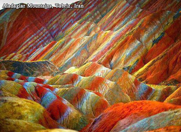 آلاداغلار تبریز-اهر یولونون ۲۵ کم-لییندهدیر. بورادا تورپاغین مختلیف رنگلرده اولماسی اعجازکار طبیعت منظرهسی یارادیب. اطرافدا اولان کندلر ده همین رنگلردن ایستیفاده ائتدییندن سانکی بیر رسم اثری تأثیری باغیشلاییر. کند ائولری ده داغلارین رنگی کیمی بویانیب.