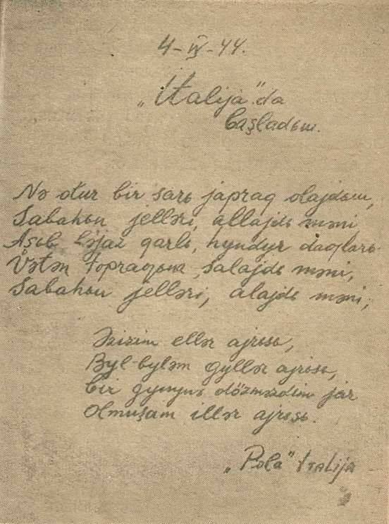 کولت. آذ ۱۹۴۴-جو ایلده یازیلدیغی بیلدیرن شعری تقدیم ائدیر: