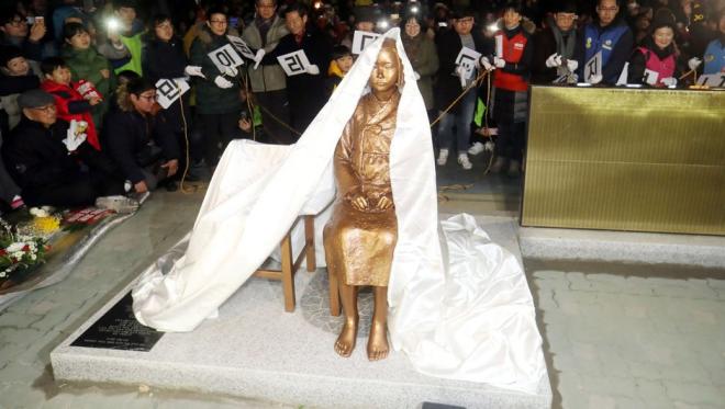 آخار .آذ خبر وئریر کی، بونا سبب جنوبی کورئیاداکی یاپونییا باش کونسوللوغو قارشیسیندا ایکینجی دونیا محاربهسی زامانی یاپون عسگرلرینین زورلادیغی قادینلارین شرفینه عابده اوجالدیلماسی اولوب.
