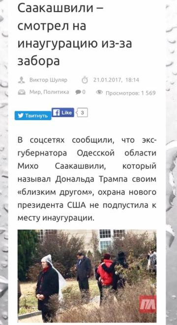 گورجوستانین ائکس-پرئزیدئنتی، اودئس‌سانین کئچمیش قوبئرناتورو میخایل سااکاشوی‌لی آبش پرئزیدئنتی دونالد ترامپین ایناقوراسییا مراسیمین‌ده ایشتیراکی زامانی یول کنارین‌دا قازونون اوزرین‌ده اولماسی ژورنالیستلرین اوبیئکتیوین‌دن یایینماییب.