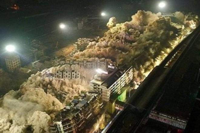 چینین هوبئی ایالتینین اوخان شهرینین مرکزینده ۱۰ ثانییهیه ۱۹ بینا پارتلادیلیب.