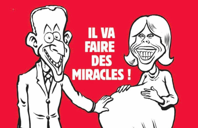 «شارلی هبدو» ژورنالی فرانسانین یئنی سئچیلمیش پرزیدنتی امانوئل ماکرون و حیات یولداشی بریجیت ماکرونون کاریکاتوراسینی درج ائدیب.