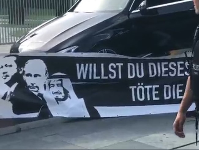 آلمانییادا بیر 'روپ شخص حکومت بیناسی اؤنونده اللرینده تورکییه پرزیدنتی رجب طایییب اردوغانا قارشی پانکارت توتاراق، اونون اؤلدورولمهسینی طلب ائدیبلر.