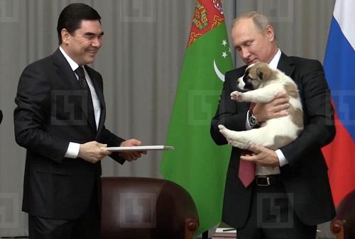 تورکمنیستان پرزیدنتی قوربانقولو بئردی محمدوو گؤروش زامانی روسییا پرزیدنتی ولادیمیر پوتینی کئچمیش آد گونو موناسیبتی ایله تبریک ائدرک اونا آلابای جینسیندن اولان «وئرنیی» (صادق) آدلی ایت هدییه ائدیب.