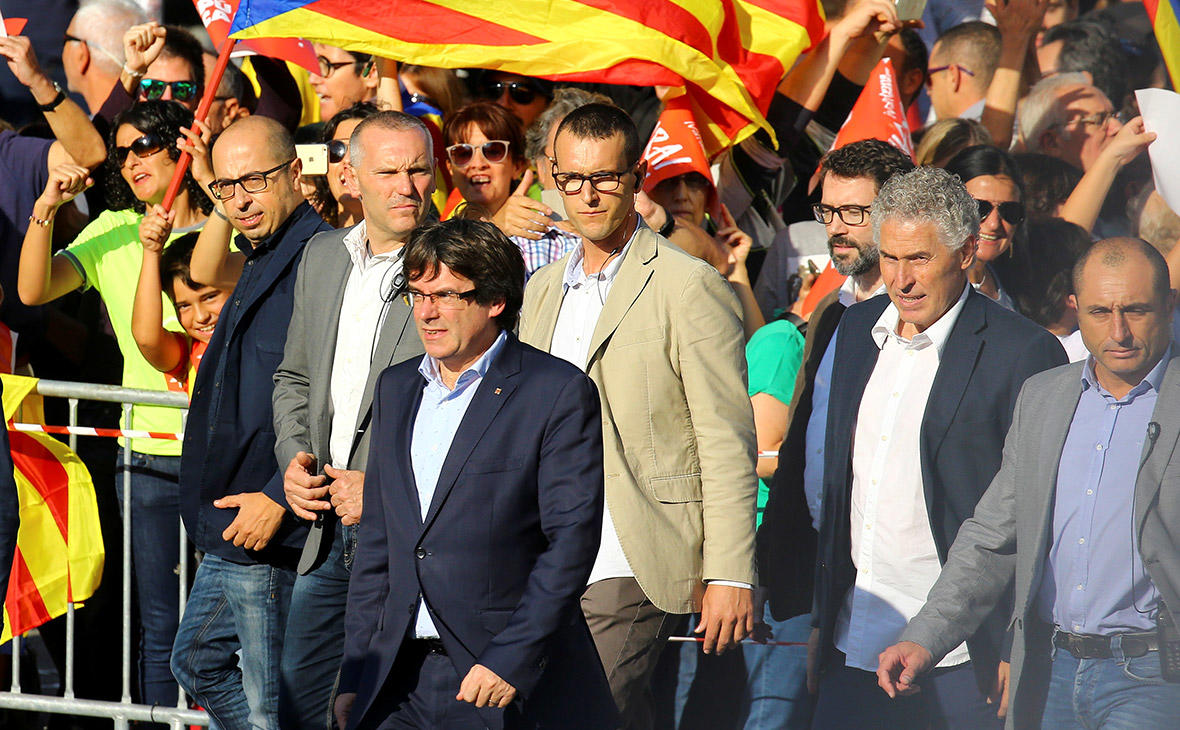 آخار. آز خبر وئریر کی، یوروش ایشتیراکچیلاری موختاریتین مهدودلاشدیریلماسی و کاتالونییا حکومتینین بوراخیلماسینا اعتراض ائدیرلر. یوروشده کاتالونییا باش ناظری کارلوس پوچدئمون، کاتالونییا حکومتینین بوتون عضولری، بارسئلونا مئری و شهر آدمینیستراسییالارینین رهبرلری ایشتیراک ائدیرلر. اعتراضچیلار آکسییادا موستقیللیک، دئموکراتییا کیمی شوعارلار سسلهندیریرلر.
