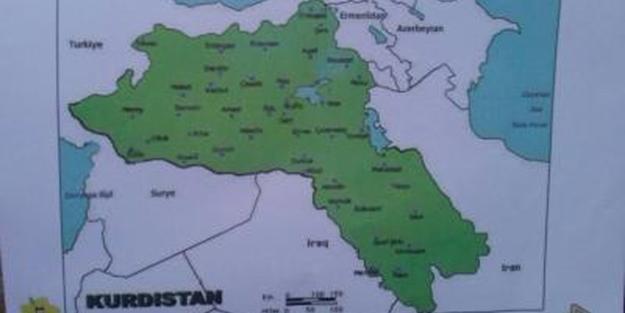 خریطهده تورکییهنین قارا دنیز بؤلگهسینه قدر اوزانان شرق و جنوب–شرق سرحدلری ایله گونی آذربایجان اراضیلری (غربی آذربایجان ویلایتی تام، شرقی آذربایجان ویلایتینین ایسه بیر حیصهسی)، عراق و سورییانین بیر قیسمی «کوردوستان» اولاراق گؤستریلیب.