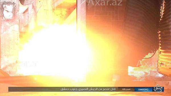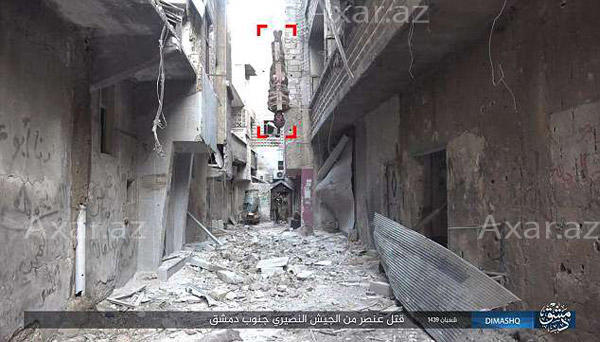 ایشید ترورچولاری سورییاداکی یئرموک قاچقین دوشرگهسینده اسیرلردن بیرینی قیریجی طییارهلردن آتیلان بومبالارین آتیلدیغی اراضییه باغلاییب.