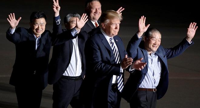 خاطیرلاداق کی، آزادلیغا بوراخیلان آمریکا وطنداشلاری لیدرلرین تاریخی گؤروشو عرفهسینده شیمالی کورئیایا سفر ائدن دؤولت کاتیبی مایک پومپئو ایله بیرلیکده اؤلکهیه قاییدیبلار. اؤلکه باشچیسی و بیرینجی خانیم اولجه طیارهیه مینرک آمریکایا قاییدان شخصلرله بیر مدت تکبتک گؤروشوبلر.