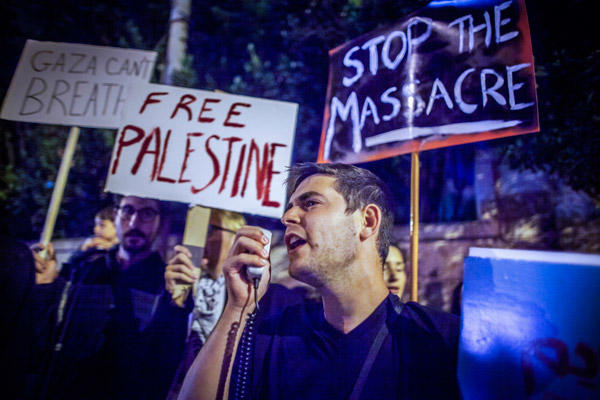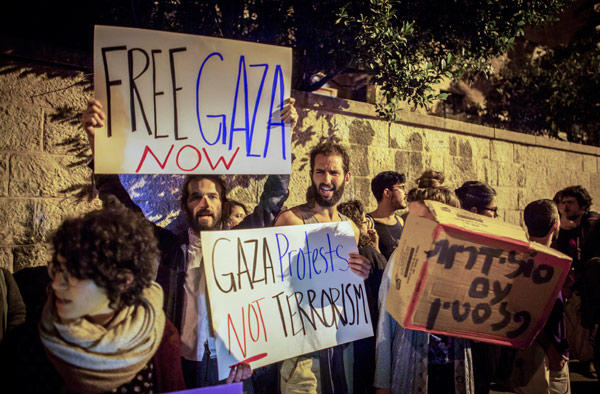 ایسرایلین نفوذلو «هاارتص» نشری یوزلرله سولچونون پایتخت تلاویوده اعتراضلارا قوشولدوغونو بیلدیریب. یوللاری باغلاییب، نقلیاتین حرکتینی ایفلیج ائدن کوتله «آتش آچماغی دایاندیرین»، «عربلر و یهودیلرین دوشمنچیلیینی رد ائدیریک» شعارلاری سسلندیریب. نوماییشچیلرین الیندهکی پلاکاتلاردان بیرینده ایسه «ترامپ و بیبی، بیز سیزین اویونجاغینیز دئییلیک» یازیلیب (بیبی باش ناظر نتانیاهونون آدینین قیسالتماسیدیر).