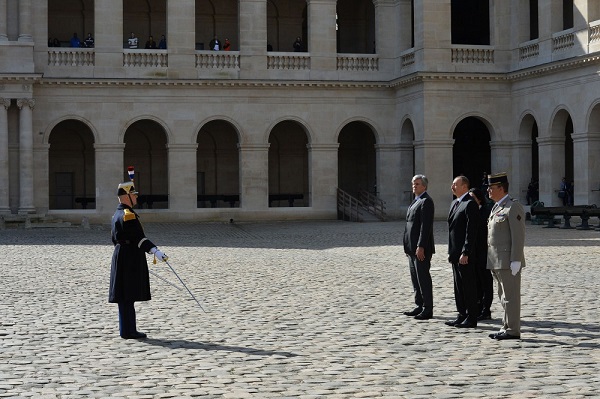 اوردو موزئیینین یئرلشدیی وترانلار میدانیندا پرزیدنت ایلهام علیئوین شرفینه فخری قارووول دستهسی دوزولوب. آذربایجانین و فرانسانین دؤولت هیمنلری سسلندیریلیب.