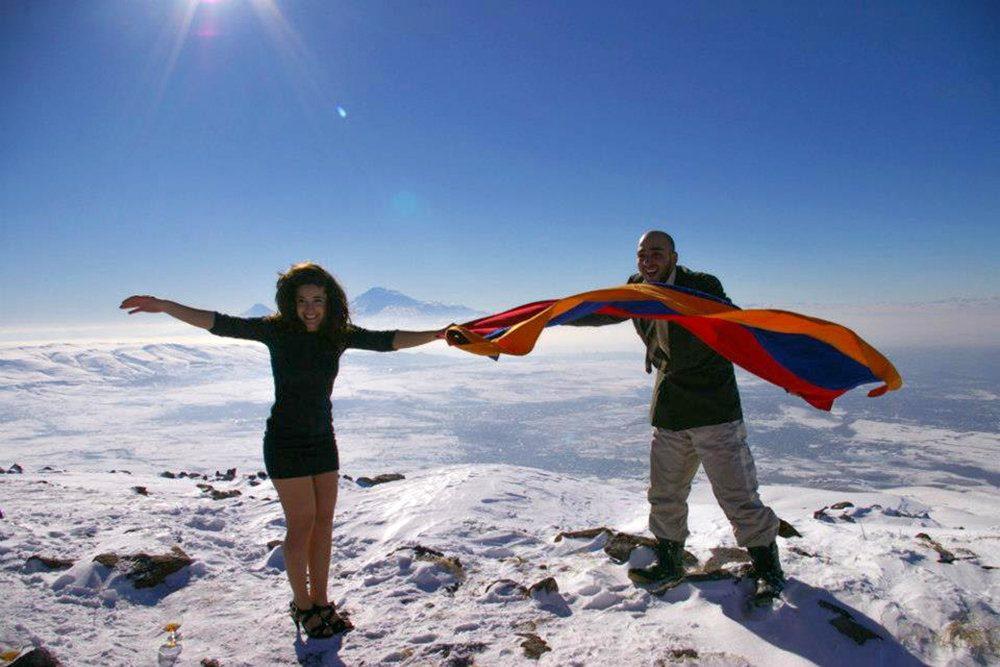 دانیئلیانین سؤزلرینه گؤره، تور ایشتیراکچیلاری آغری داغینین ان یوکسک نقطهسینه - ۵۱۳۷ متر یوکسکلییه ارمنی بایراغی یئرلشدیریب.
