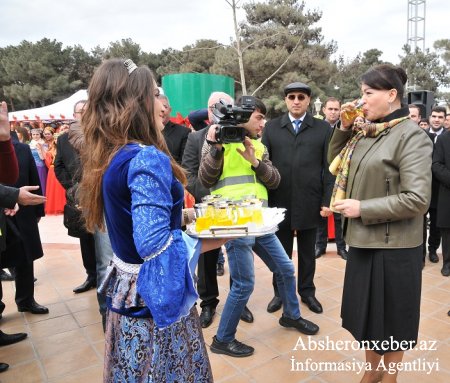 بایرام شنلیینین مشعلینی قالاماق اوچون «یانارداغ» دؤولت تاریخ-مدنیت و طبیعت قوروغوندان آتش گتیریلیب. دده قورقود و باهار قیزینین مشایعتی ایله تونقال قالانیب. سونرا آبشرون رایون ایجرا حاکمیتینین باشچیسی ایراده گولممدووا و رایونون حقوق-محافظه، صحییه، تحصیل، مدنیت و دیگر خیدمت تشکیلاتلارینین رهبرلری ایله بیرگه پارک اراضیسینده بایرام گزینتیسی حیاتا کئچیریلیب، شنلییه قاتیلان ایشتیراکچیلارین حاضیرلادیقلاری بایرام نمرهلرینه تاماشا ائدیلیب. آذربایجان پهلوانلاری، ایدمانشیلاری اؤز مهارتینی گؤستریبلر.