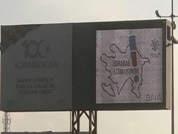 باکیدا یئرلشهن الکترون معلومات تابلولاریندا پرزیدنت ایلهام علیئوین "قاراباغ آذربایجاندیر!» مئساژی یاییملانیب.